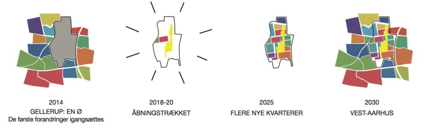 Boligområdet Gellerup og Toveshøj åbnes op mod resten af Aarhus. Som en ø i byen har området ligget trafikalt adskilt. Ensartet alment boligbyggeri skiller sig ud fra resten af byen. Det vil vi lave om på: Nye former for bolig, erhverv og infrastruktur deler bydelen op i kvarterer. Her vil mindre områder med klar identitet og bystruktur skabe et andet tilhørsforhold for beboerne.