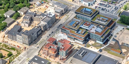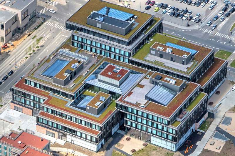I toppen af Karen Blixens Boulevard ligger Blixens. Bygningen danner rammer for 1.000 kommunale arbejdspladser, udadvendte byfunktioner, iværksættere og caféliv.